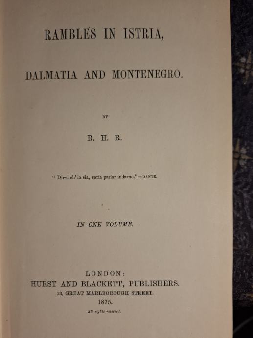 R. H. de Ricci-Rambles in Istria,Dalmatia and Montenegro,1875.Posveta