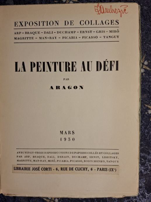 Exposition de collages, Arp-Braque-Dali-Duchamp-Ernst-Gris-Miro-Magritte-man-Ray-Pilabia-Picasso-Tanguy.