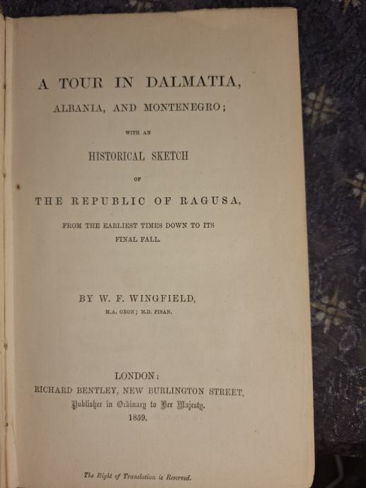 William Frederick Wingfield - A tour in Dalmatia, Albania and Montenegro with an historical sketch of the Republic of Ragusa, from the earliest times down to its final fall