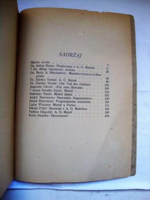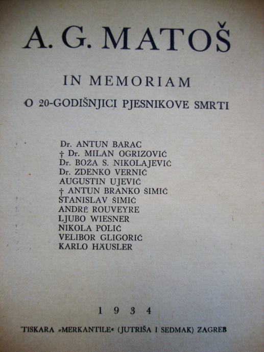 A.G MATOŠ - IN MEMORIAM sa posvetom Dr.ILiji Despotu od LJUBO WIESNER