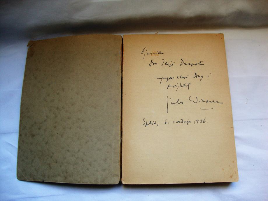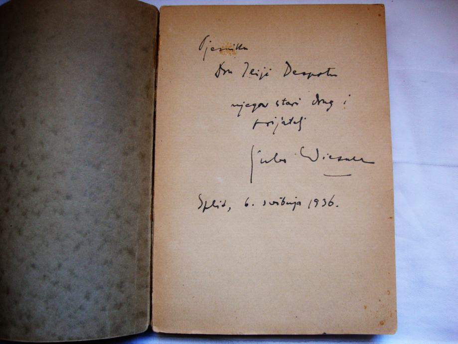 Iz 1934, godine meki uvez Split 6.svibnja pjesniku ILiji Despotu njegov stari drug i prijatelj Ljubo Wiesner napisano je crnim nalivperom