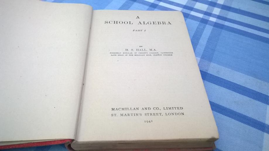 A SCHOOL ALGEBRA PART I H.S.HALL 1941.