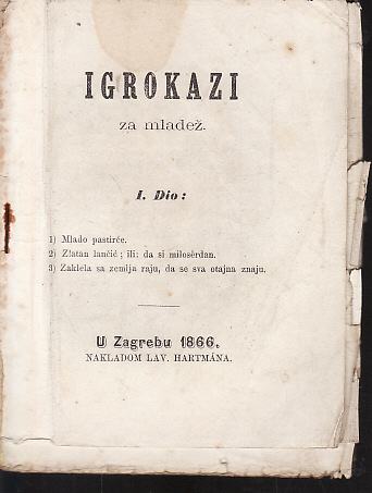 A. V. TRUHELKA : IGROKAZI ZA MLADEŽ , ZAGREB 1866.