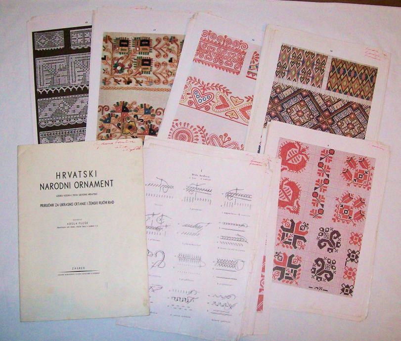 Uzorci vezova i tkiva sjevernog područja Nezavisne Države Hrvatske. Priručnik za ukrasno crtanje i ženski ručni rad. Dodatak tekstu su uzorci vezova i tkiva iz sjeverne Hrvatske (57 uzoraka).
