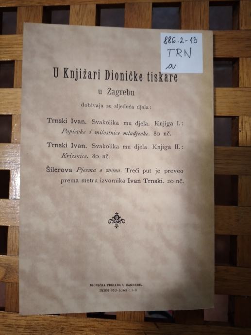 ANA LOVIĆEVA Spjevao Ivan Trnski Zagreb 1890 Pretisak Zrin Zagreb 1996