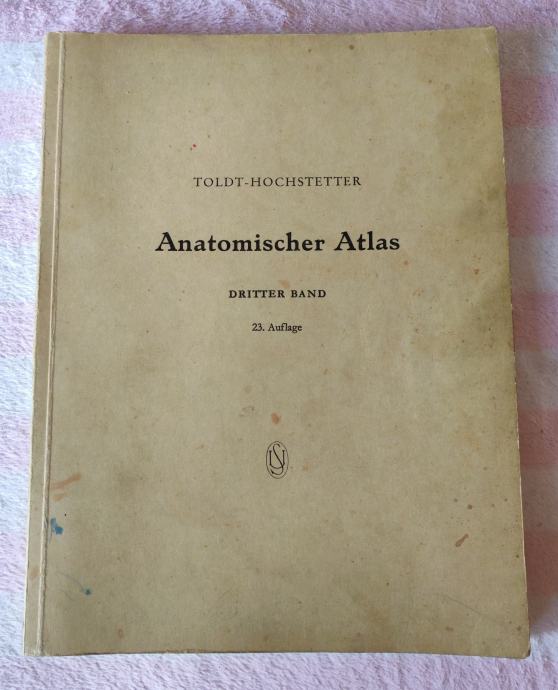 Knjiga Anatomischer Atlas autora Toldt- Hochstetter iz 1960., u izdanju Urban & Schwarzenberg, Wien-Innsbruck, 224 stranice, očuvano.