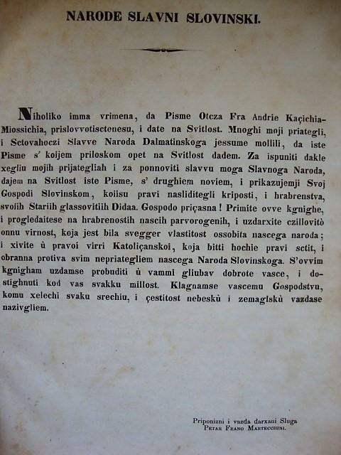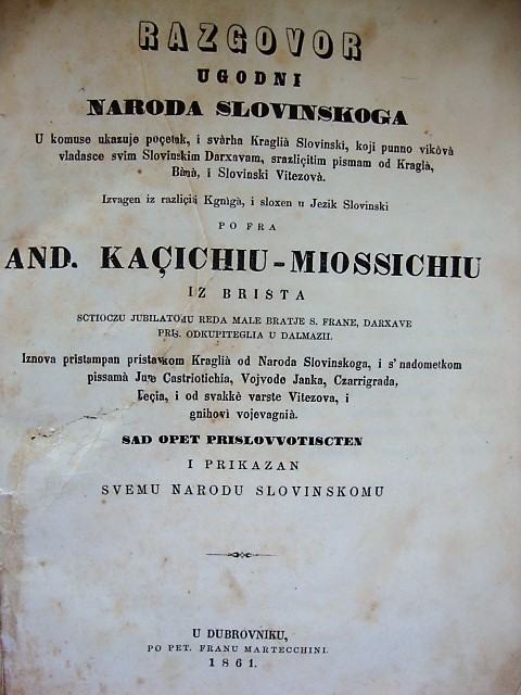 ANDRIJA KAČIĆ-MIOŠIĆ "RAZGOVOR UGODNI NARODA SLOVINSKOGA" -1861.Dubrov