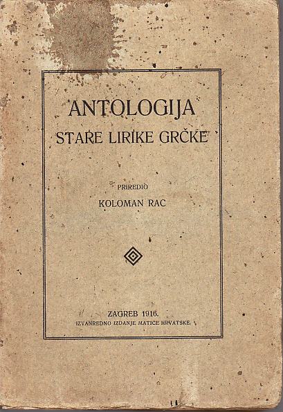 ANTOLOGIJA STARE LIRIKE GRČKE - PRIREDIO KOLOMOAN RAC , ZAGREB 1916.