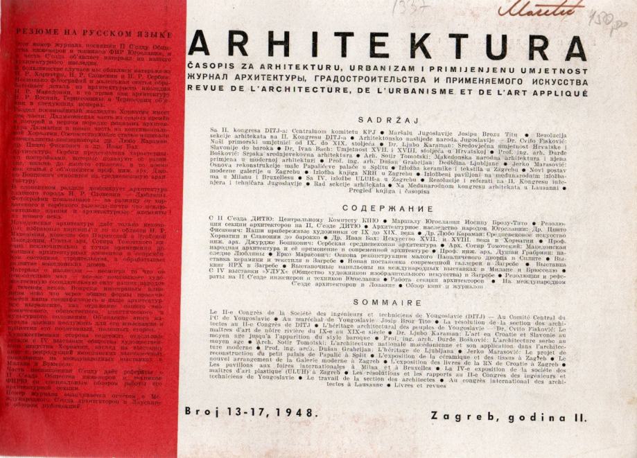 Arhitektura - časopis za arhitekturu... broj 13-17, 1948.