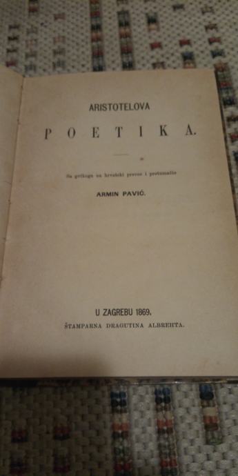 Aristotelova poetika, 1869 i De arte poetica 1882, dvije knjige uvezane u jednu.