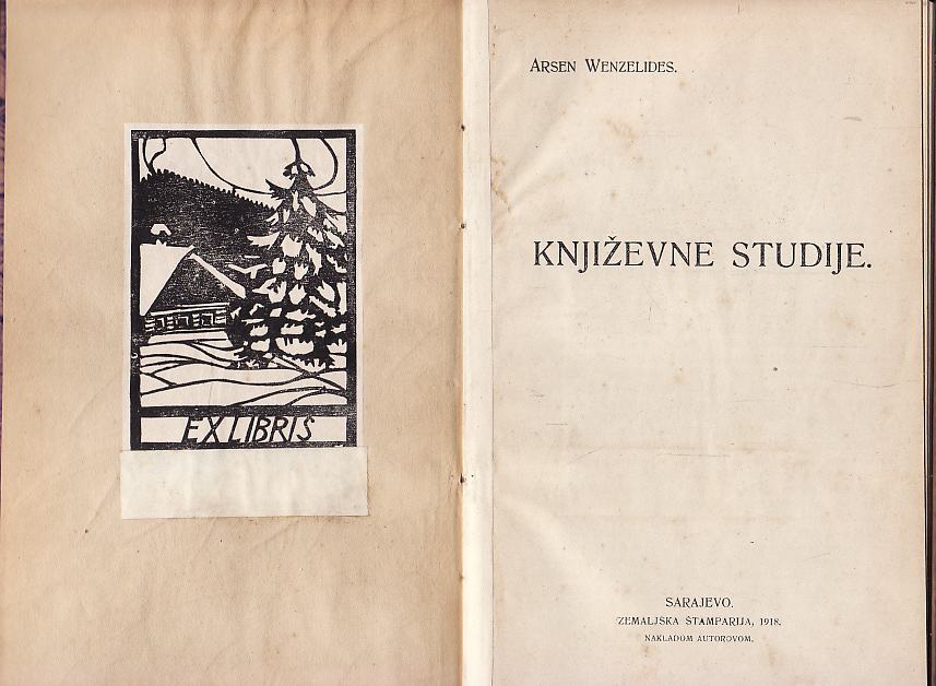 ARSEN WENZELIDES : KNJIŽEVNE STUDIJE , SARAJEVO 1918.