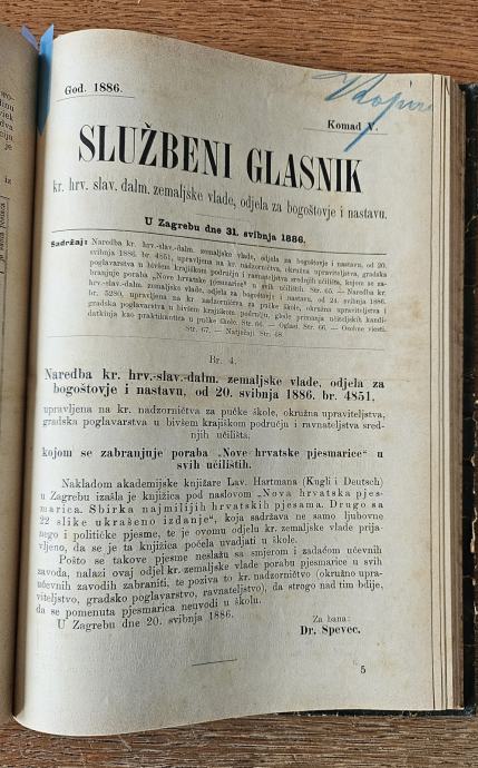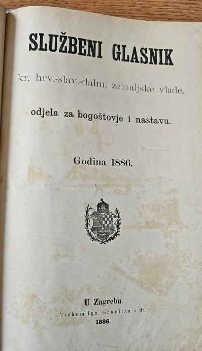 AU Službeni glasnik odjela za bogoštovlje i nastavu za 1886.-u g. KR. HRV.-SLAV.-DALM. ZEMALJSKE VLADE.