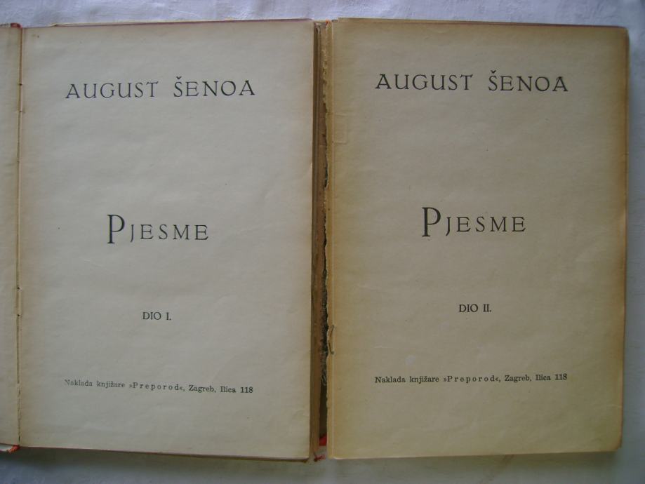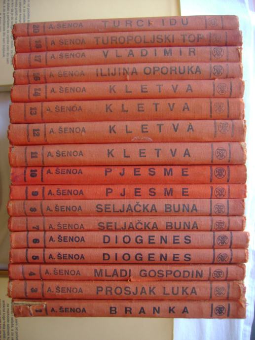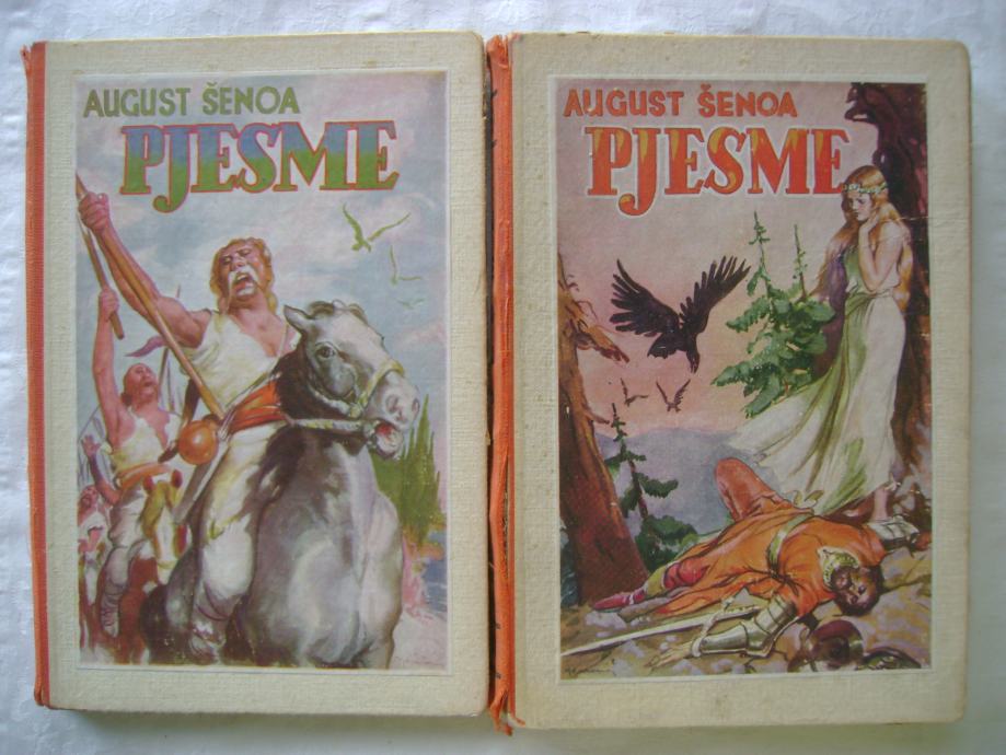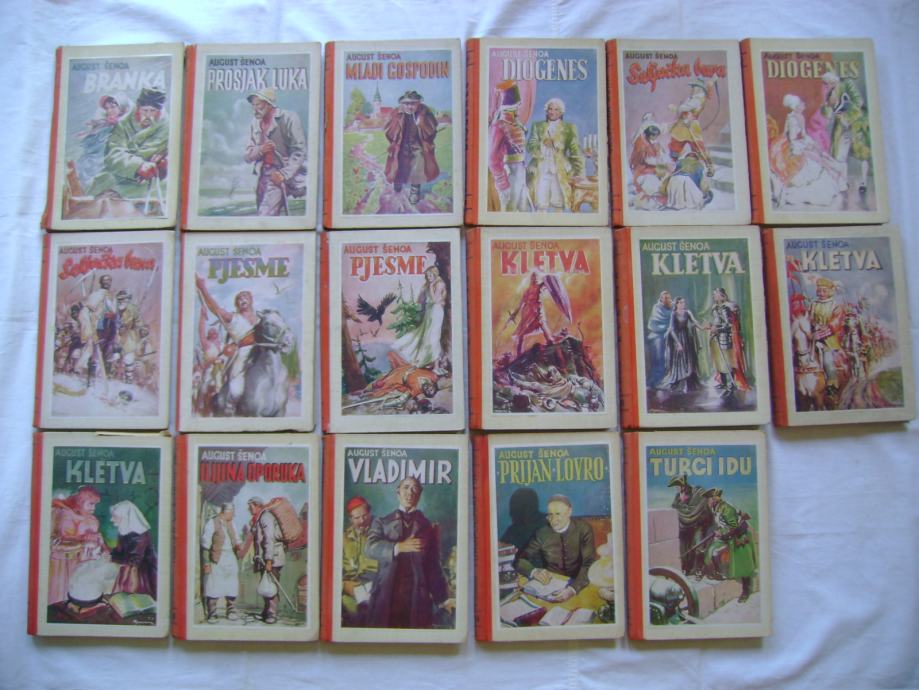 August Šenoa - Sabrana djela - izdavač Knjižara Preporod, Zagreb 1942./1943. godine, 14 x 21 cm, tvrdi uvez, naslovnice ilustrirao Andrija Maurović.