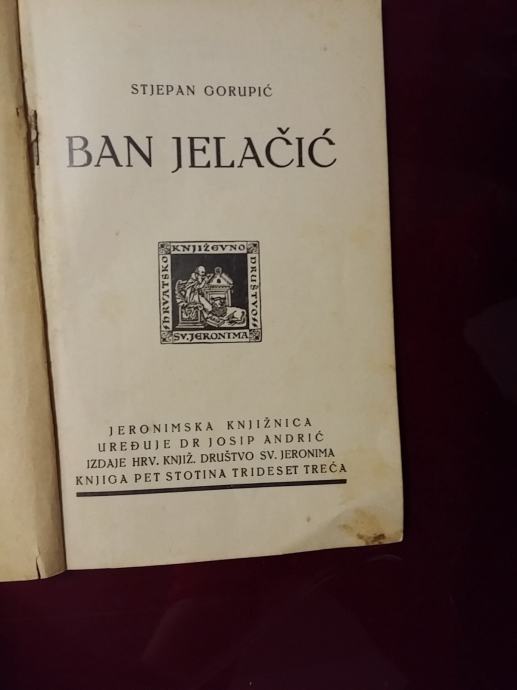 Stjepan Gorupić: Ban Jelačić, naklada Jeronimske knjižnice 1938,Hrvatska u doba bana Jelačića i njegov ratni pohod, 88 str. meki uvez, 12x19 cm.