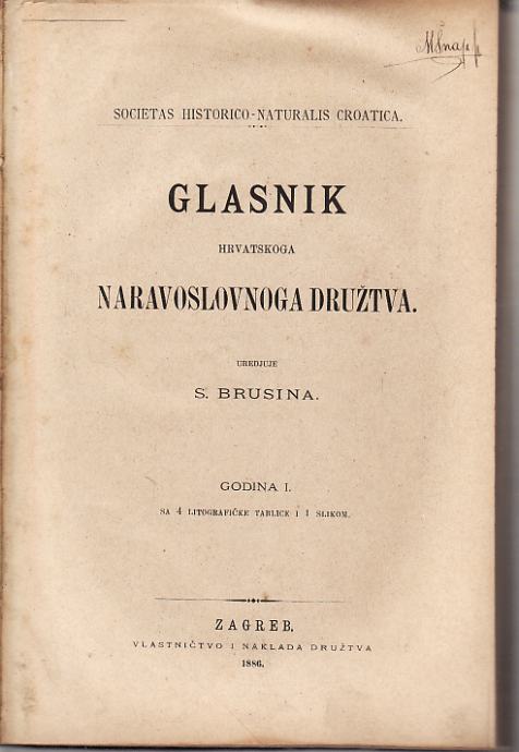 1.S. BRUSINA : GLASNIK HRV. NARAVOSLOVBOGA DRUŽTVA 1886. , 318 STR + IV LITOGRAFIČKE TABLICE I 1 SLIKA