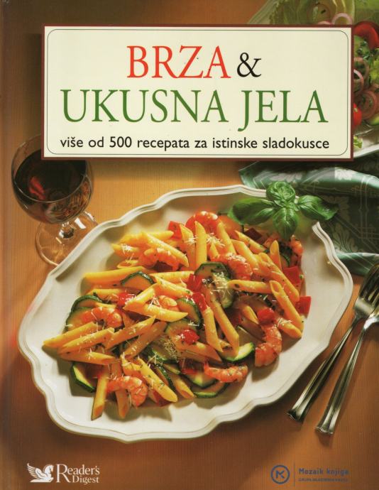 S korica: „...Kuharica je namijenjena svima koji vole dobra slasna jela, a ne mogu satima stajati uz štednjak. Više od 500 ukusnih jela za svaku prigodu koja možete brzo i lako pripremiti. Maštovite varijacije osnovnih jela. Brzi obroci za iznenadne goste.....“