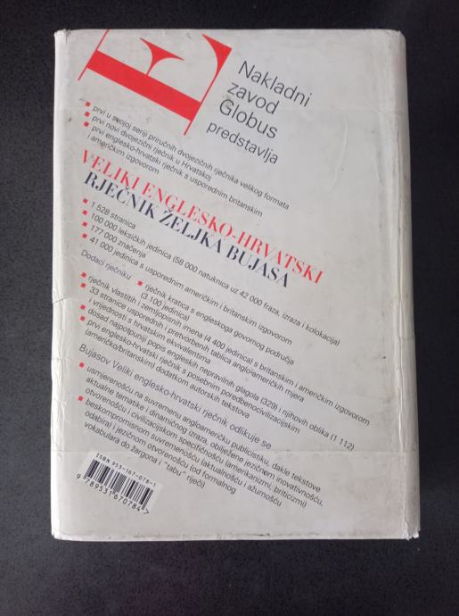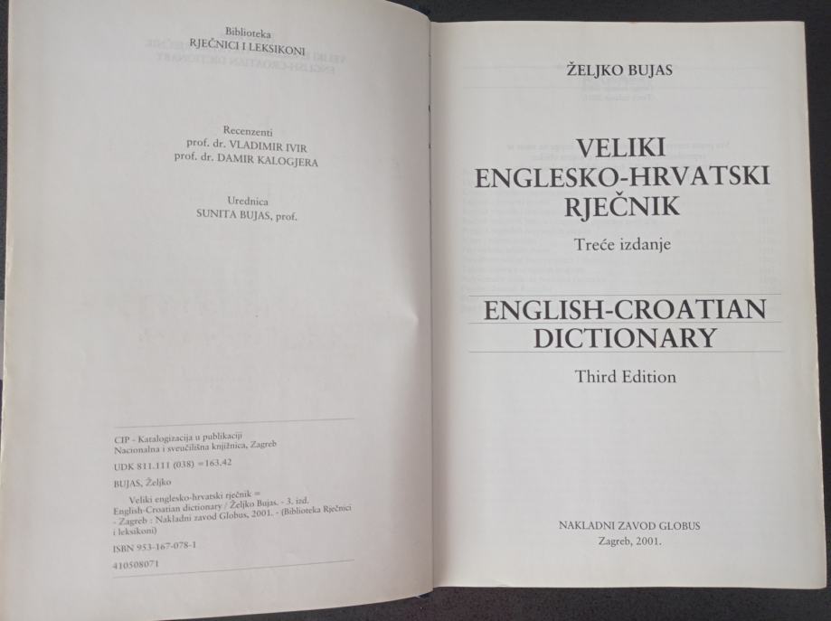 Najkvalitetniji i najmoderniji veliki hrvatsko-engleski rječnik - Suvremeno koncipiran civilizacijskim i sociolingvističkim komentarima - Prvi naš rječnik koji obrađuje i britanski i američki izgovor. 1.528 stranica, 177.000 značenja, 100.000 leksičkih jedinica (58.000 natuknica i 42.000 frazema), 41.000 britansko-američkih pravopisnih razlika i tvorbenih inačica, rječnik angloameričkih kratica (3.100 jedinica), rječnik vlastitih i zemljopisnih imena (4.400 jedinica), 33 stranice usporednih i pretvorbenih tablica angloameričkih mjera, vrijednosti i nazivlja s hrvatskim ekvivalentima, najpotpuniji popis engleskih nepravilnih glagola (329) i njihovih oblika (1.112).