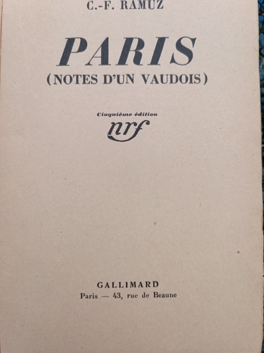 C. F. Ramuz : Paris (notes d'un vaudois)