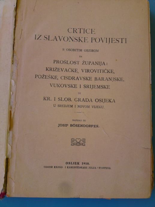 CRTICE IZ SLAVONSKE POVIJESTI, 1910.g., Bosendorfer Josip