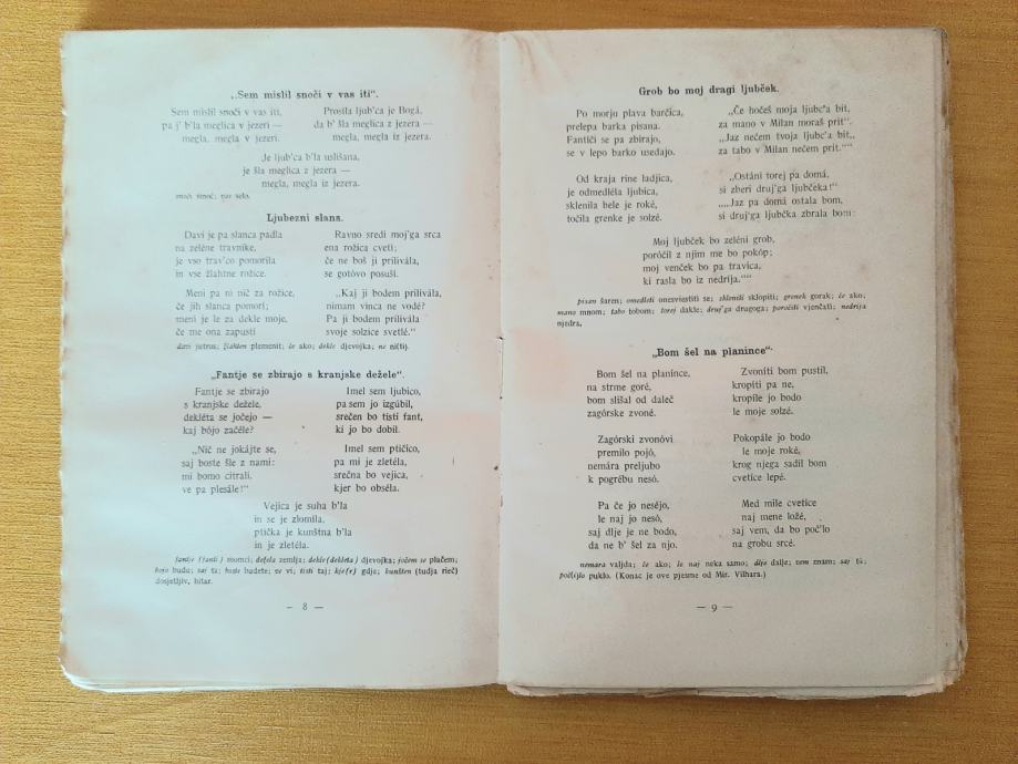 Da ne zaboravim napomenuti, vrhovi listova su spojeni. Očito slovensko pjesniČtvo nije zaintrigiralo vlasnika knjige da prereže vrhove listova radi lakšeg rukovanja knjigom.