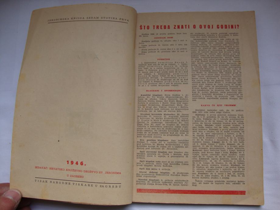 DANICA 1946. KOLEDAR, HRVATSKO KNJIŽEVNO DRUŠTVO SV.JEROLIMA U ZAGREBU