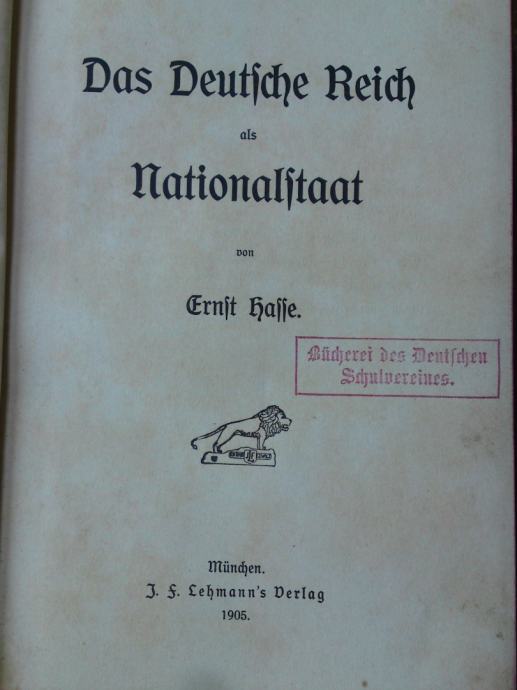 Das Deutliche Reich als Nationalstaat, Ernit Hasse, J.F.Lehmanns verlag; Munchen, 1905.g., 146 str., njemački jezik; gotica.