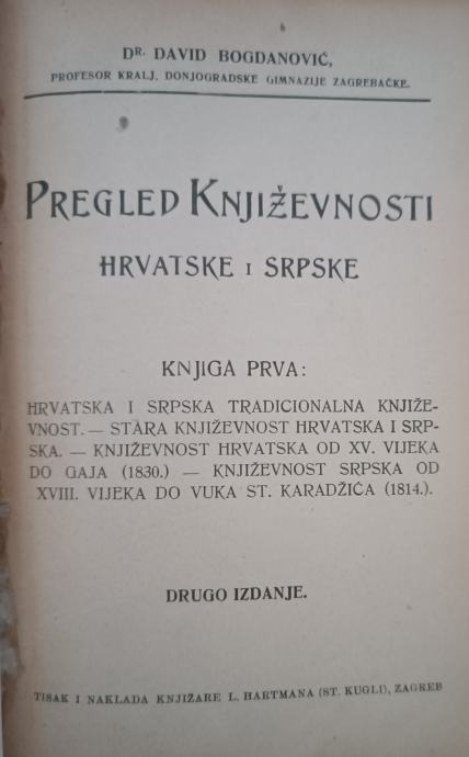 David Bogdanović: Pregled književnosti hrvatske i srpske (knjiga prva)