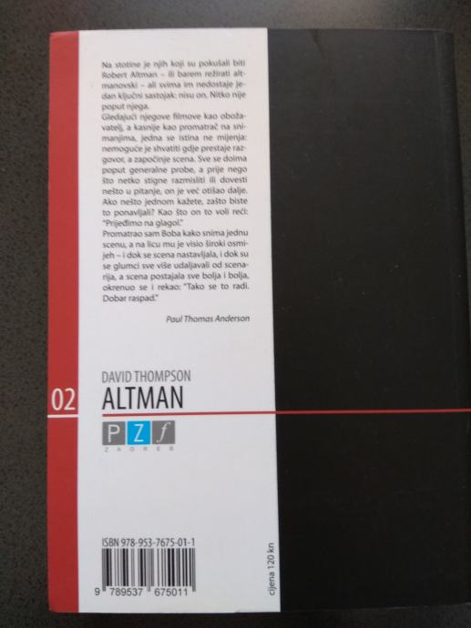 Studija o jednom od najvećih američkih redatelja ostvarena kroz niz razgovora koje je autor vodio s njim i u kojima se Altman prisjeća svojih brojnih eksperimenata, pustolovina i nezgoda tijekom šest desetljeća koje je proveo iza kamere. U tom smislu čitatelji mogu svjedočiti njegovoj redateljskoj karijeri koja je svoj vrtoglavi uzlet doživjela nakon komedije "M.A.S.H." (1969), velikim filmskim hitom koji je u Cannesu osvojio "Zlatnu palmu", nakon čega će uslijediti još niz remek-djela - "McCabe i gospođa Miller", "Dug oproštaj", "Lopovi poput nas", "Nashville", potom adaptacije iznimnih kazališnih predstava, a na filmskoj pozornici ponovno će zablistati 1992. godine s "Igračem", potom "Kratkim rezovima" te Oscarom ovjenčani "Gosford Park", dodatno potvrdivši njegovo istaknuto mjesto među suvremenim filmskim redateljima.