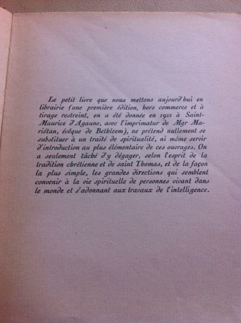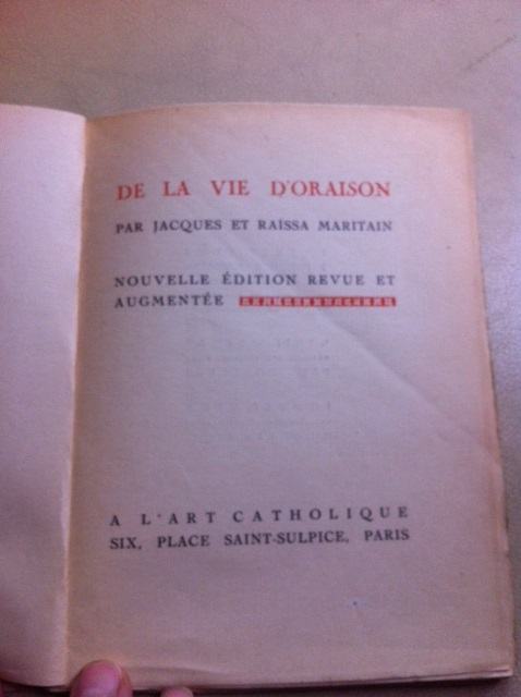 De La Vie D'oraison. Jacques et Raissa Maritain, 1933.