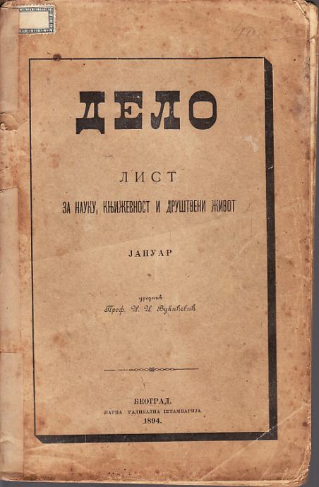 DELO list za nauku književnost i društveni život br. 1 / 1894.Beograd