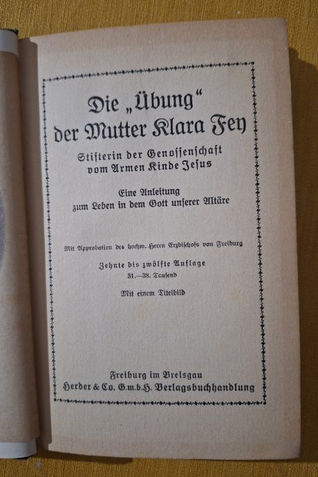 Die Ubung der Mutter Klara Fey, izdanje 1923