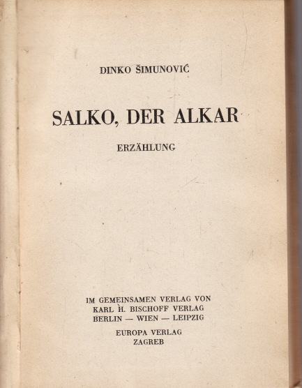 DINKO ŠIMUNOVIĆ : SALKO DER ALKAR erzahlung , Bischoff Verlag 1943.
