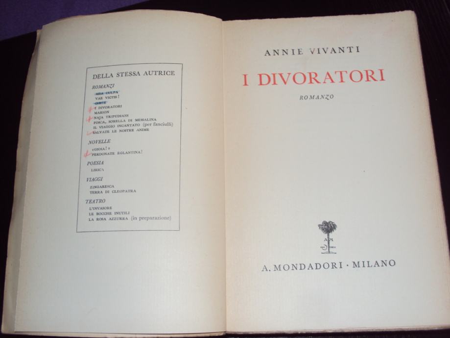 I DIVORATORI ROMANZO - Annie Vivanti 1937.