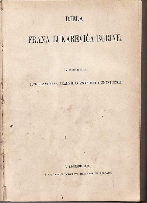 DJELA FRANA LUKAREVIĆA BURINE , JAZU ZAGREB 1878.