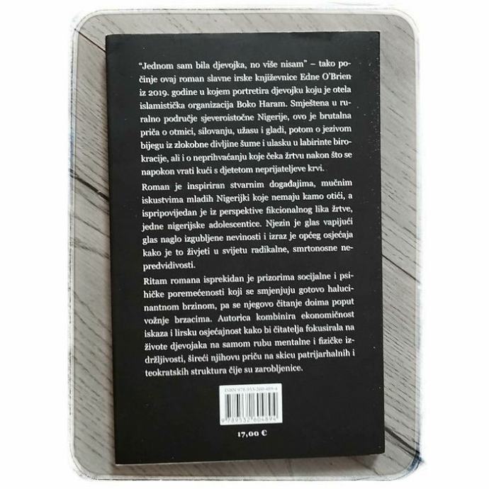 "Jednom sam bila djevojka, no više nisam." - tako počinje ovaj roman slavne irske književnice Edne O'Brien iz 2019. godine u kojem portretira djevojku koju je otela islamistička organizacija Boko Haram. Smještena u ruralno područje sjeveroistočne Nigerije, ovo je brutalna priča o otmici, silovanju, užasu i gladi, potom o jezivom bijegu iz zlokobne divljine šume i ulasku u labirinte birokracije, ali i o neprihvaćanju koje čeka žrtvu nakon što se napokon vrati kući s djetetom neprijateljeve krvi.