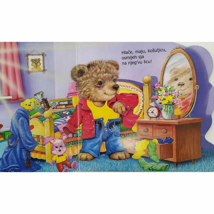 Slikovnica prati što sve medo radi nakon što se probudi - kako se pere, oblači, doručkuje...Ilustracije su popraćene jednostavnim i lako pamtljivim stihovima pa je tako slikovnica namijenjena upravo najmlađim čitateljima koji se prvi put susreću s knjigom.