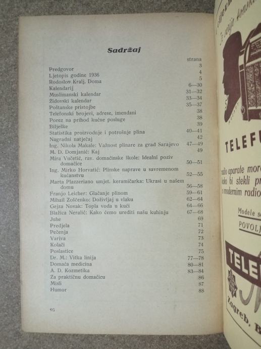 Domaćinski kalendar Gradske plinare Sarajevo 1936.