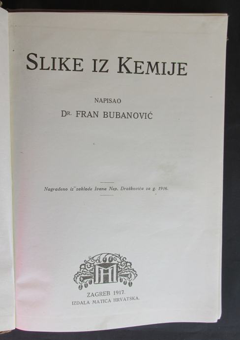 Dr. Fran Bubanović - SLIKE IZ KEMIJE, Zagreb 1917.g.