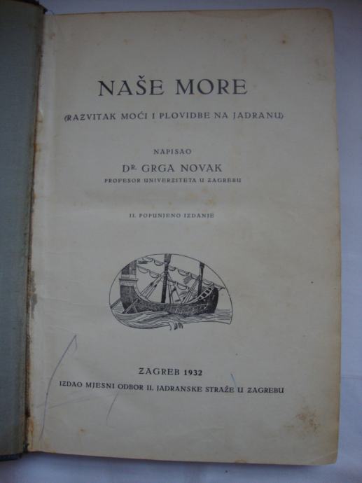 DR. GRGRA NOVAK "NAŠE MORE" iz 1932 godine Zagreb --300 kn !!!!