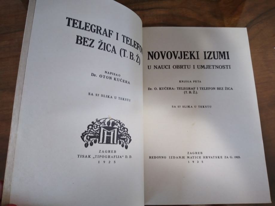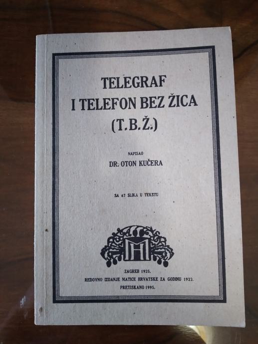 dr. Oton Kučera Telegraf i Telefon bez žice PRETISAK ZAGREB 1925