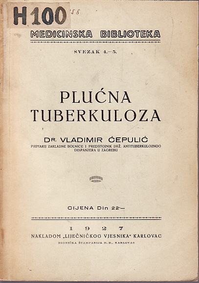 1. DRAGO ĆEPULIĆ - PLUĆNA TUBERKULOZA , KARLOVAC 1927. MEKI UVEZ 87 STR.