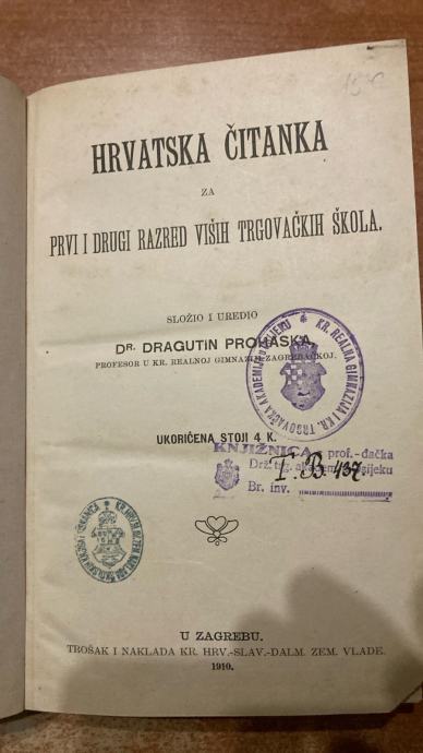 DRAGUTIN PROHASKA:HRVATSKA ČITANKA ZA I. i. II.RAZRED VIŠIH TRGOVAČKIH