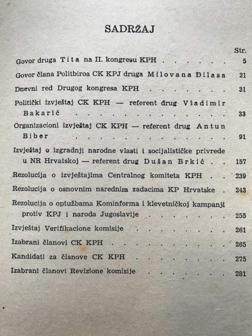 Drugi kongres Komunističke partije Hrvatske / iz 1948. / 284 str /Pula