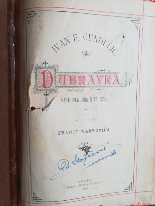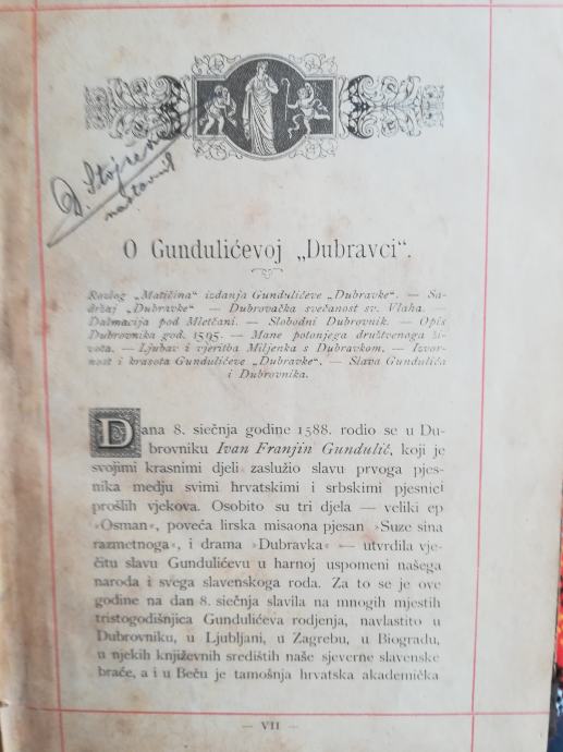 Dubravka Ivana F. Gundulića donijela je vječitu slavu ovom piscu, ali i hrvatskom narodu i slavenskom rodu. Dubravka slavi svetkovinu slobode u gradu Dubrovniku. Izdanje Matice hrvatske, Zagreb 1888.