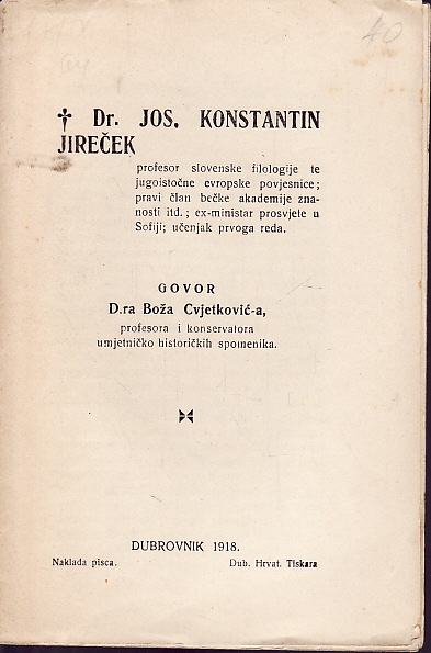 5. Govor dr. BOŽA CVJETKOVIĆA : DR. JOS. KONSTANTIN JIREČEK , DUBROVNIK 1918. MEKI UVEZ , 20 CM , 13 STR...........60 KUNA