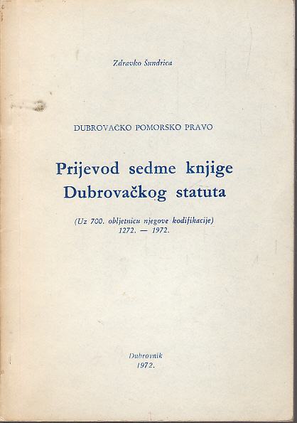 9. ZDRAVKO ŠUNDRICA : PRIJEVOD SEDME KNJIGE DUBROVAČKOG STATUTA ,DUBROVNIK 1972 ,meki uvez ,20 cm ,40 str....80 kuna