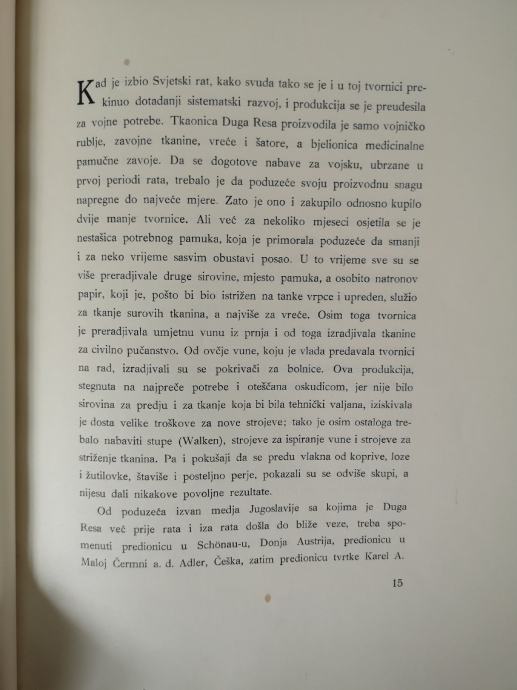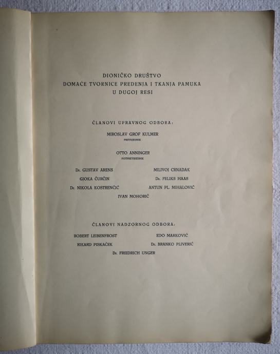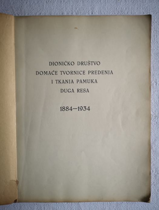 SVESAK - DOKUMENTIRAN ZAPIS O NASTANKU.. I PRATECIM SITUACIJAMA TIJEKOM OSNIVANJA I RAZVOJA DIONICKOG DRUSTVA DOMACE TVORNICE PREDENJA I TKANJA PAMUKA U DUGOJ RESI OD 1884 - 1934 god.. na 90 str. .. Tisak i uvez : Stamparija " Gaj", Zagreb... Slike : Jugoslovanska Tiskarna, Ljubljana...