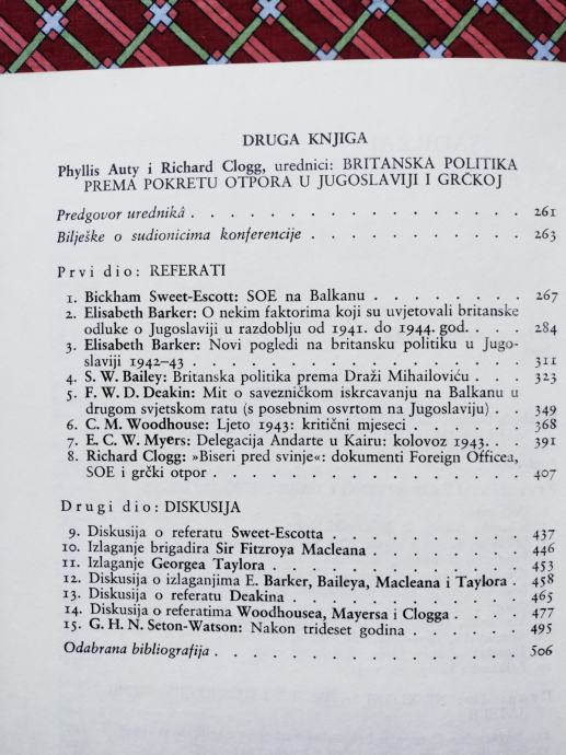 Elisabeth Barker:Britanska politika na Balkanu u II.svjetskom ratu.