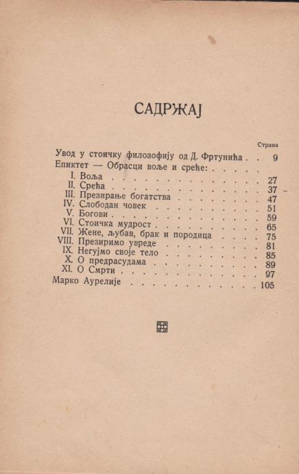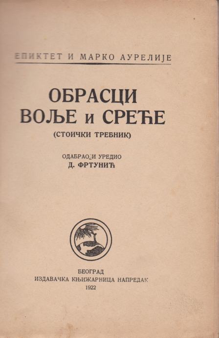 Epiktet i Marko Aurelije: Obrasci volje i sreće (Stoički trebnik), Izdavačka knjižarnica Napredak, Beograd 1922.