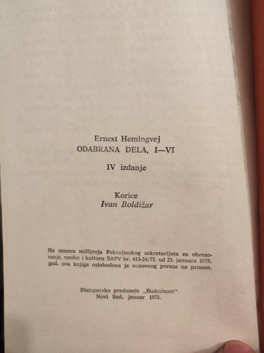 Ernest Hemingway Zbirka knjiga, Odabrana izdanja I-VI "Budućnost 1975"
